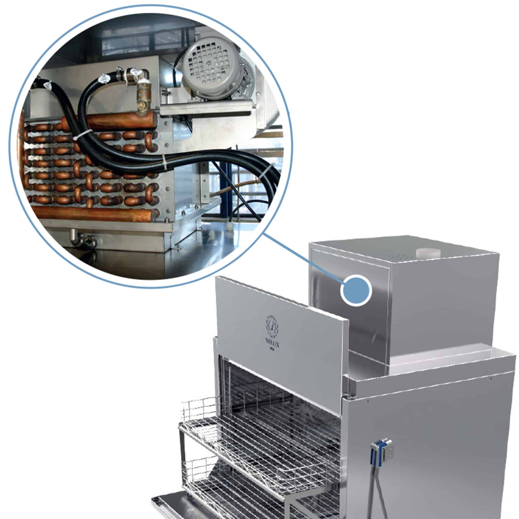 Costruita interamente in acciaio inox AISI 304 e dotata di doppia parete isolante, assicura silenziosità e risparmio energetico.