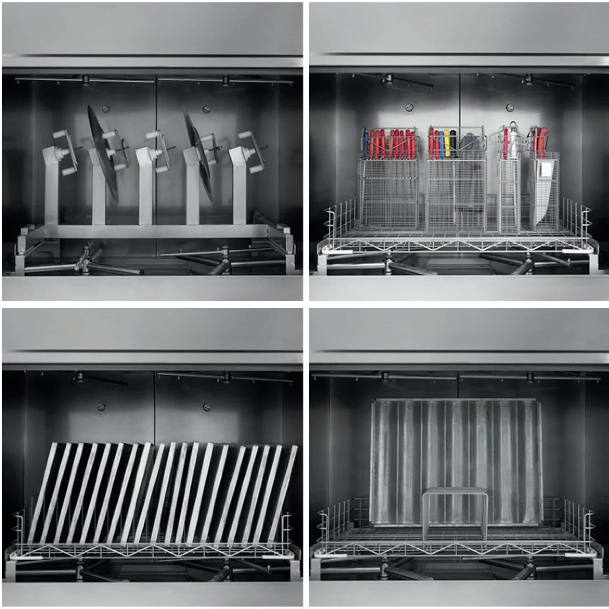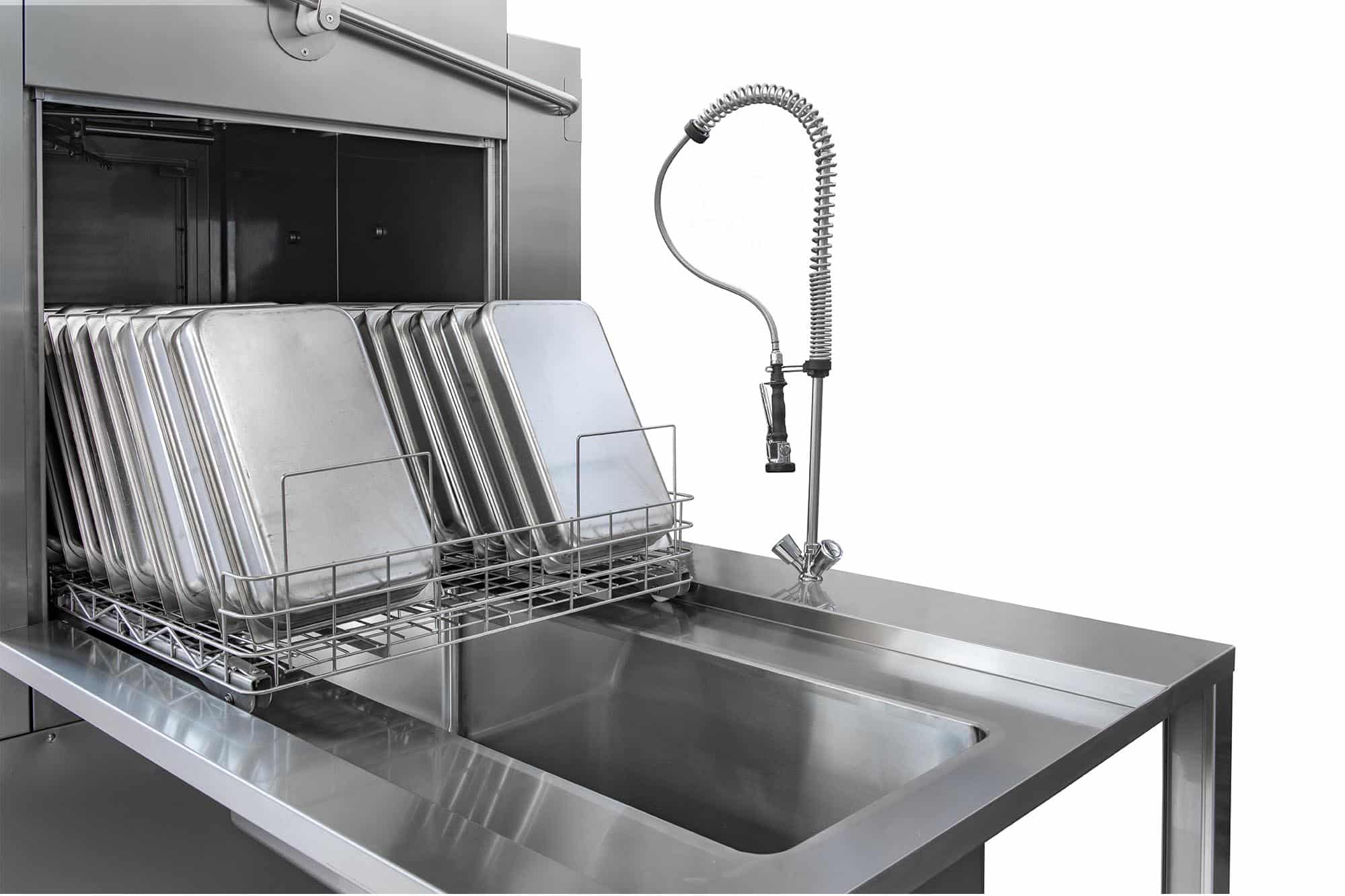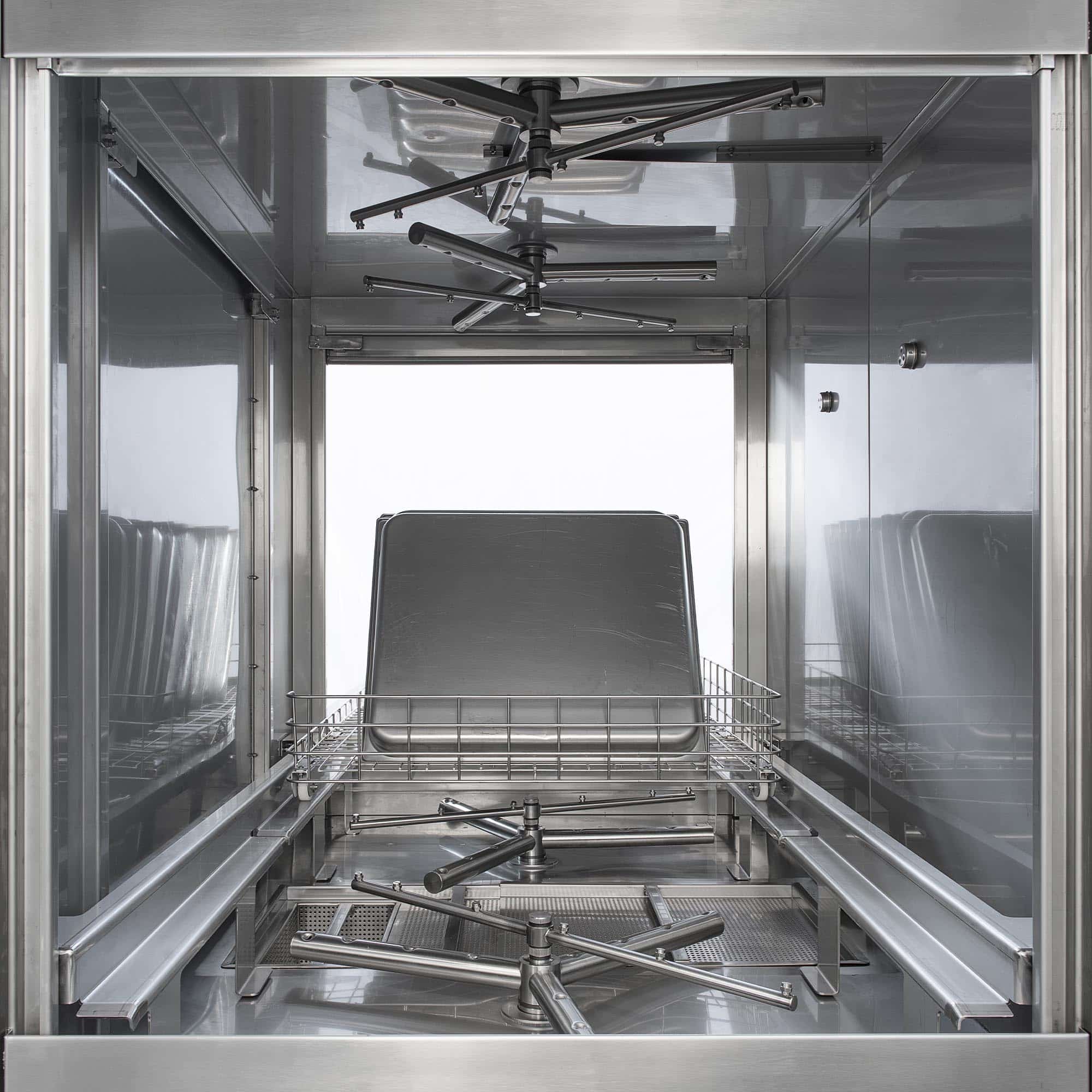 Le braccia rotanti in acciaio inox e le pompe ad alte prestazioni garantiscono una pulizia completa e rapida anche nei cicli più intensi.